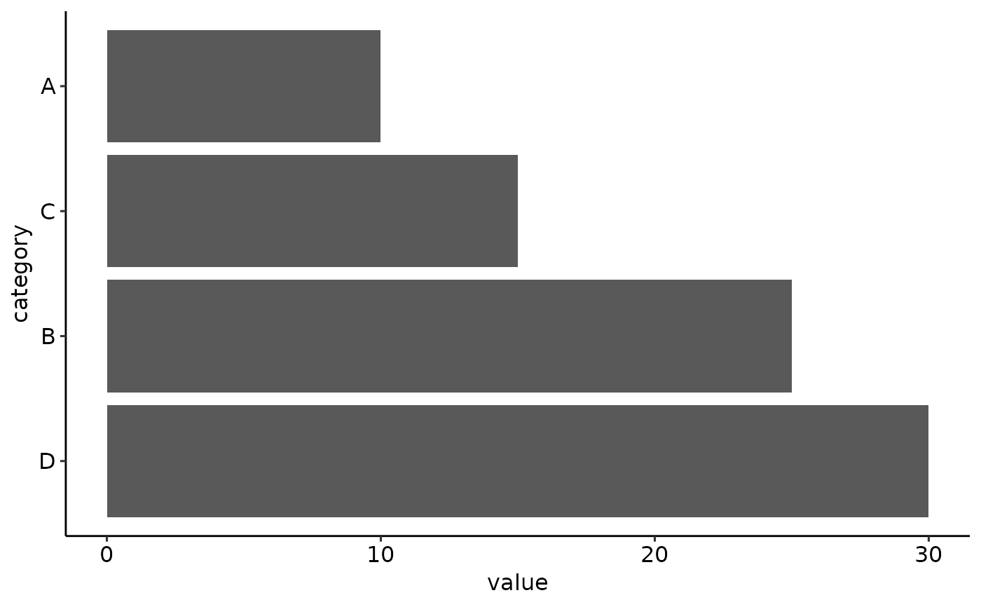 Create a bar chart from a data frame with optional dodge grouping, vertical/horizontal orientation, and sorting by y values.
