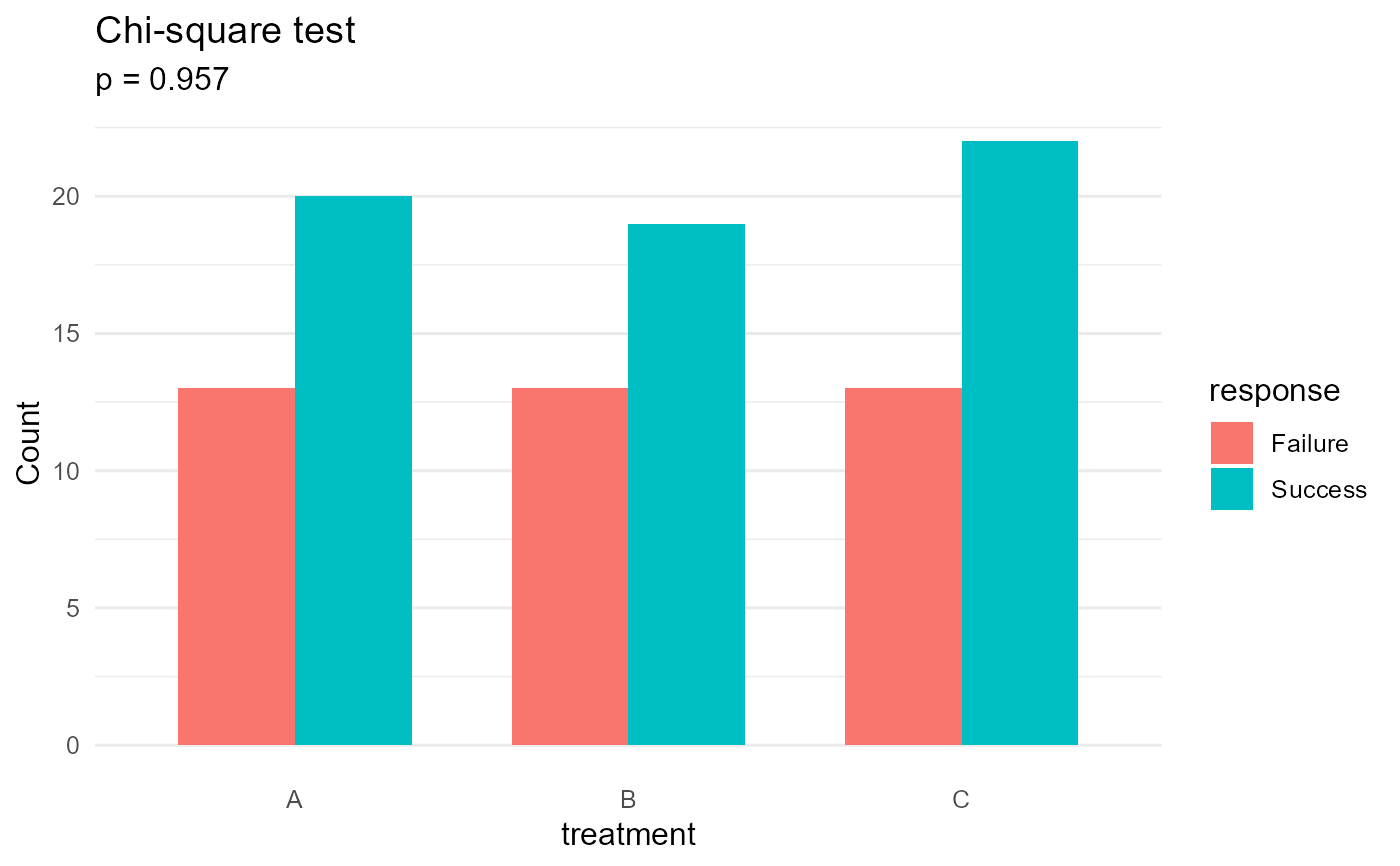 result <- quick_chisq(data, var1 = treatment, var2 = response)